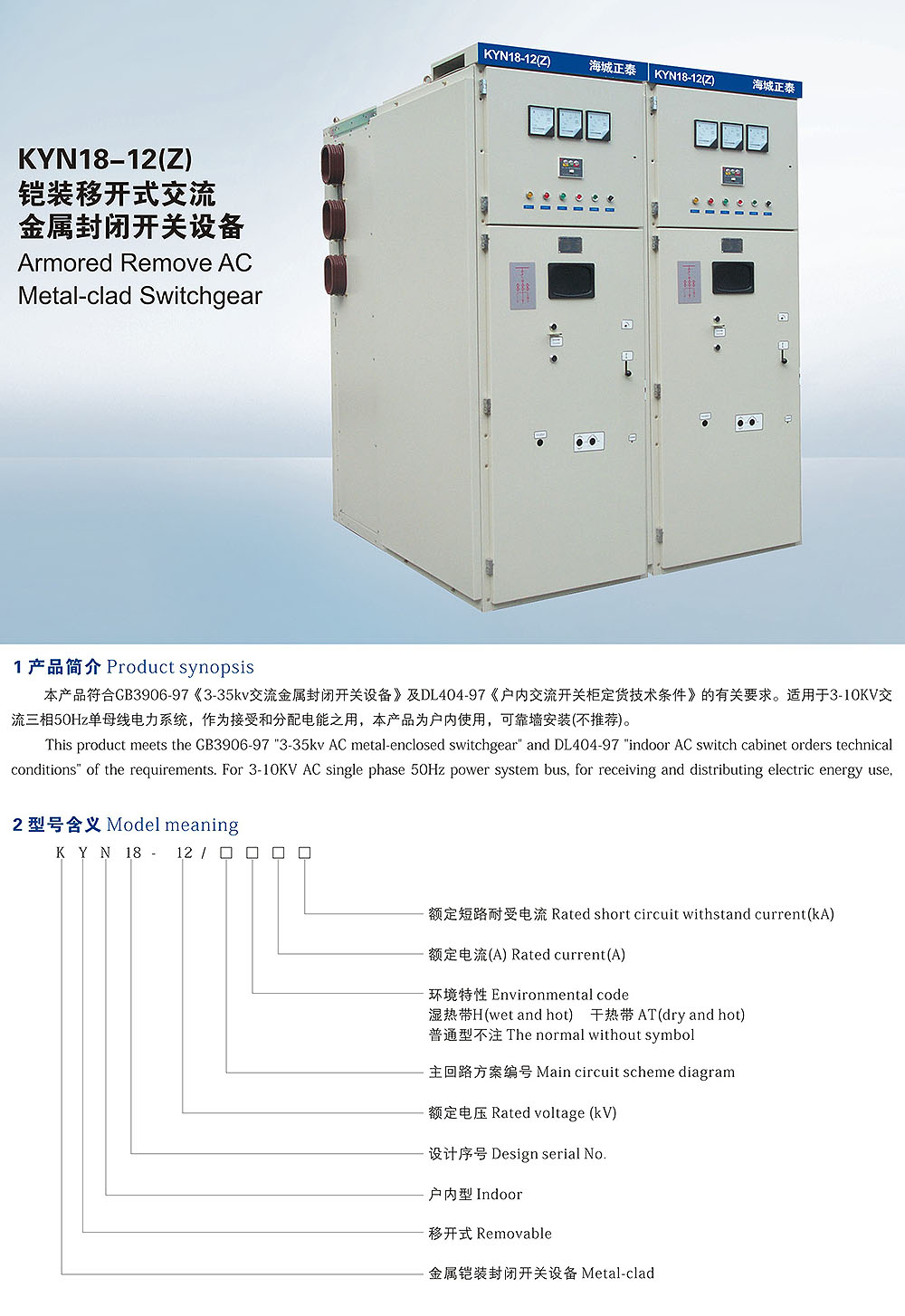 KYN18-12(Z)铠装移开式交流金属封闭开关设备